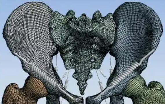 骨盆骨、肌肉、韌帶等結構復雜,外形極不規則,受力機制研究困難,骨折類型多樣,因此骨盆的生物力學研究相對較為滯后。已有的研究,對于骨盆骨 折、損傷大多采用實驗力學的方法,通過構建骨盆骨折模型,然后在力學材料試驗機上進行三點折彎、扭曲、電測或者采用新近開始應用的壓敏膠片力學測試等方 法。但是,實驗力學的一個主要的缺點是對于骨折模型的制作比較復雜,比較困難。同時所制作的骨折模型對于實際骨折的應力分布需要進行太多的簡化,容易導致 實驗結果的偏差。因為骨盆的尸體模型非常有限,實驗力學測試中,不可能對所有類型骨盆骨折進行研究。由此造成實驗結果經常存在較大差異,給臨床醫師帶來許 多困惑。