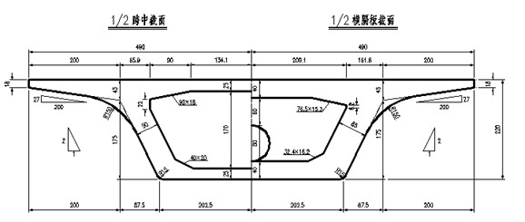 本橋最終采用模型3,利用支座偏心與內強外弱腹板束來減小內外側支反力差。