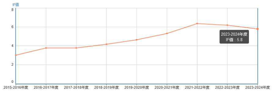 該期刊在1997年獲得了它的第一個影響因子1.035,而近五年來,它的影響因子總體上呈現穩定上升的趨勢。盡管2022年的影響因子比2021年略有下降,但最新的影響因子已經達到了5.8。