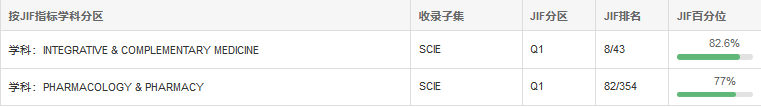 中科院分區(qū):位于醫(yī)學(xué)-全科醫(yī)學(xué)與補充醫(yī)學(xué)/藥學(xué)方向2區(qū)。