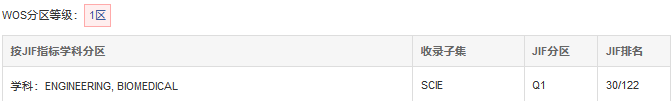 在JCR的分區里,這本雜志可是Q1區的,在工程和生物醫學領域的123本期刊中,排名第30。