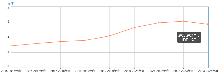 Journal of Agricultural and Food Chemistry近8年影響因子整體呈上漲趨勢,2015年位2分+,2016年上漲至3分,2019年上漲至4分,2020年開始突破5分,2022年影響因子為6.1,2023年截至目前即時因子為4.37,預計2023年影響因子將穩定在5分以上!中科院分區大類1區小類1/2區,Top期刊,JCR為1區。