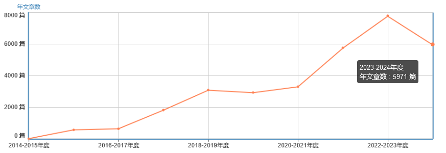 發文量:近年來發文量較大,2021年發表了約7500篇文章,2022年約有7800篇