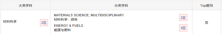 中科院分區: 大類學科:材料科學(2區)。 小類學科:材料科學綜合(2區)、能源與燃料(3區)。