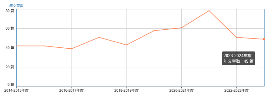 發文量每年發表約49篇文章,數量較少,可能更注重專業性,但投稿競爭相對較小。 大部分是研究型文章(占89.8%),綜述類較少。