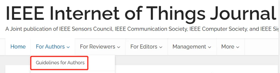 我們搜索期刊,并找到期刊的官網。例如我們選擇的期刊是:IEEE Internet of Things Journal 。